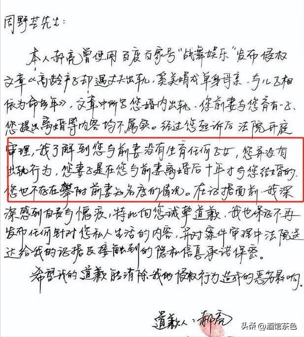 他当庭道歉,这才有了网上的这封道歉信,承认自己错了。
