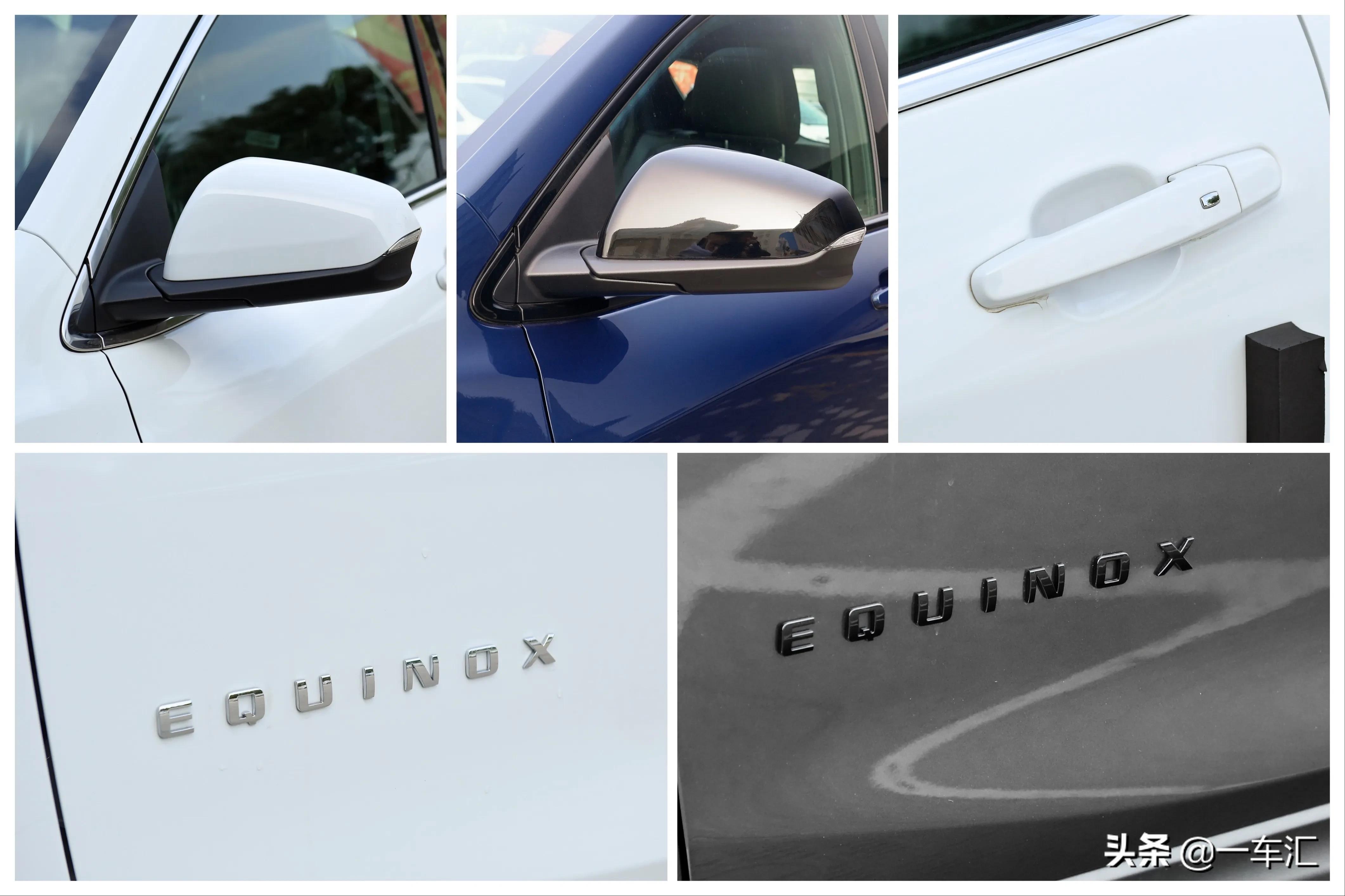 后视镜集成LED转向灯带,550T车型后视镜外壳也采用了黑色涂装,全系后视镜均支持电动调节和镜片加热,除最低配535T 领界版外,其它版本车型还配备后视镜电动折叠功能。全系标配前排车门无钥匙进入、车内无钥匙启动、远程启动,相比改款前的全车车门无钥匙进入有所减配。前排车门表面的EQUINOX标识,用来提升细节处的高级感,550T车型也将其进行黑化处理。