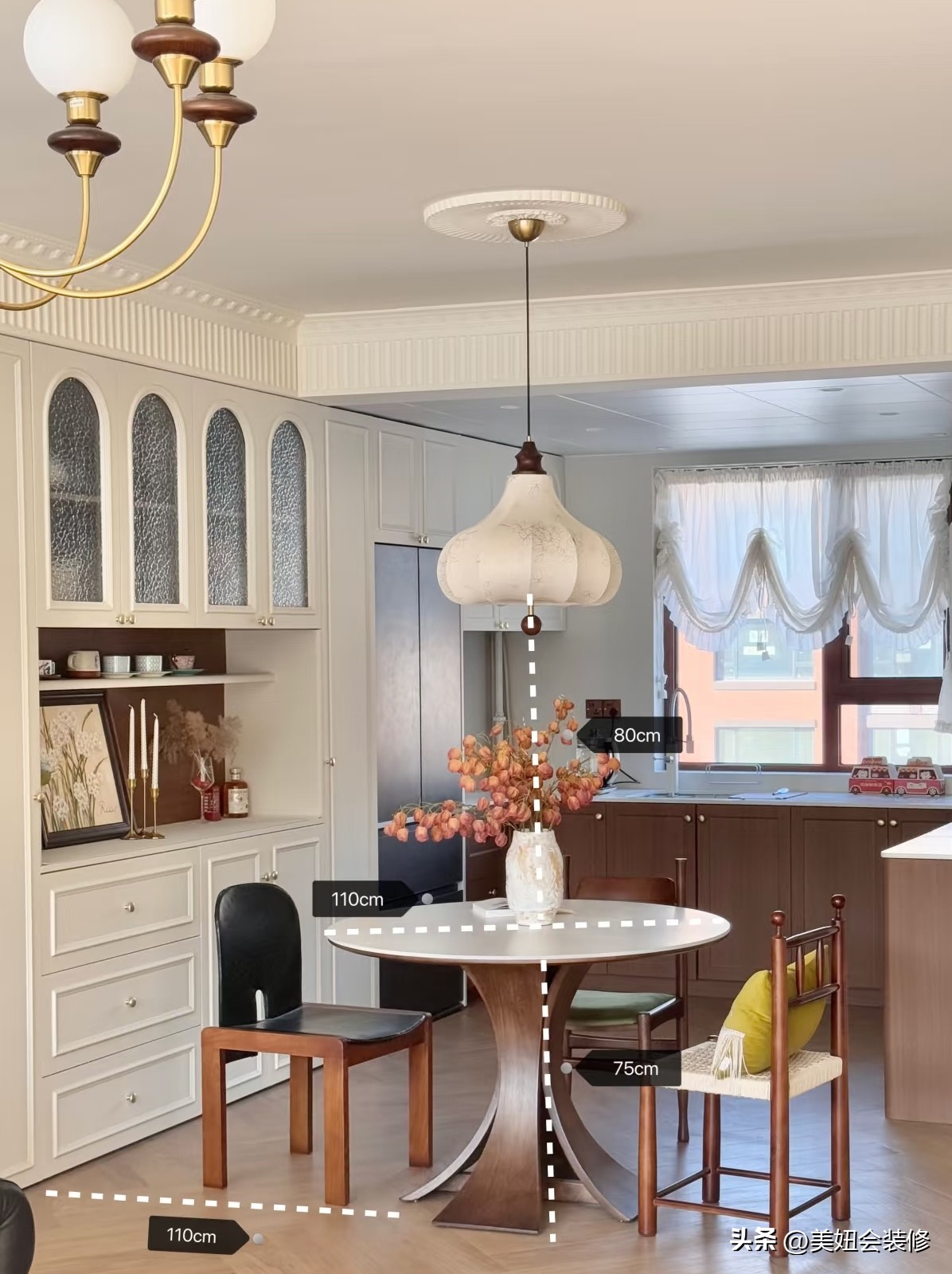 对于餐厅或客厅的吊灯来说,有一些黄金比例需要注意。吊灯距离桌面应大于70cm,这样既能保证充足的照明,又不会让人在就餐或活动时感到压抑;