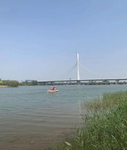 玩法:骑行沿河塑胶跑道,或野餐赏花。