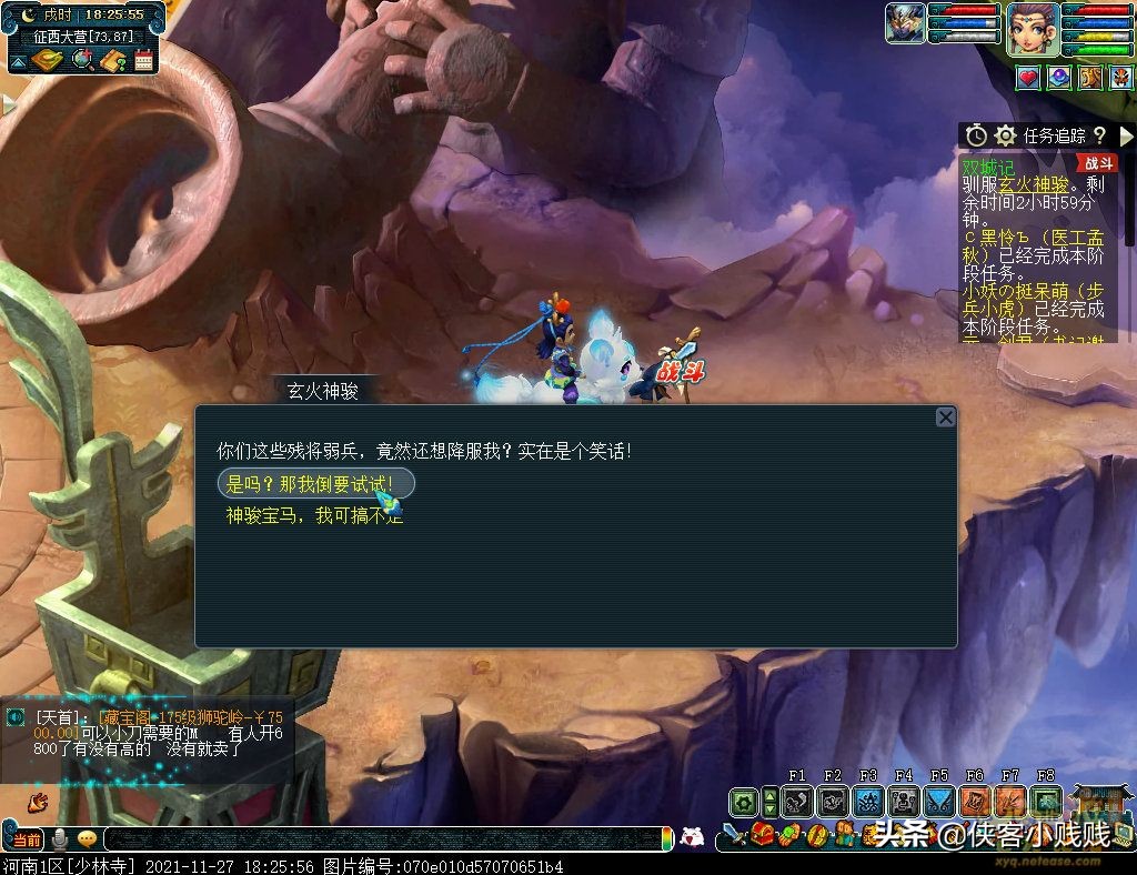 找回三匹马后点击老马夫后点击玄火神骏触发战斗。