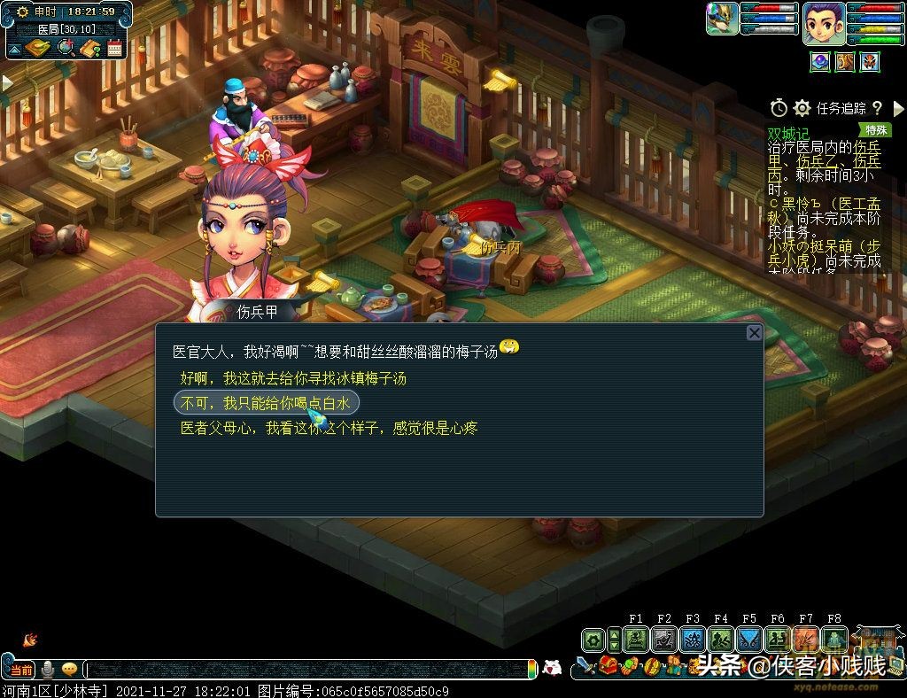 伤兵甲,选“不可,我只能给你喝点白水”。