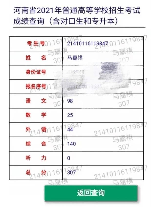虽然马嘉祺的粉丝辟谣称这是同名素人的高考成绩,但是马嘉祺文化课分数未过线是事实,也就是马嘉祺的文化课分数不足337分。甚至已经有神通广大的网友扒出所有河南“马嘉祺”的高考成绩,分别是307分、336.5分、268分,无论是哪一个马嘉祺,说实话都挺打脸“学霸人设”的。