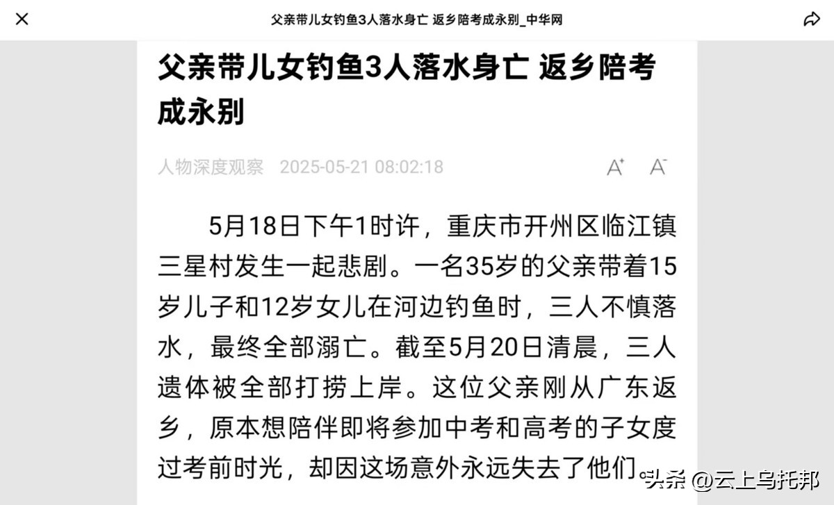 重庆这一家三口溺亡的悲剧,应该已经足以让大家看到生命的脆弱以及意外的突然。