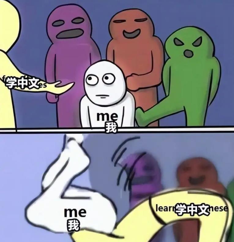 有外国学生描述学中文,就好像中文老师对自己伸出了双手,并敞开怀抱告诉自己:来吧,孩子。没想到等自己开始学了以后,就会发现“中文”竟给自己来了个“背摔”,受尽内伤,关键是还有有苦说不出,忍不住想嘤嘤嘤了。