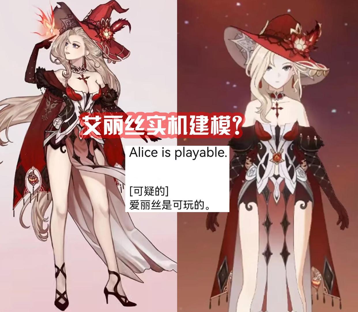 之前也有内鬼透漏说艾丽丝将会在后续版本的实机,成为可玩角色,也有玩家晒出过有关艾丽丝的实机建模,虽然并不能实锤,但从目前老米铺垫了这么久来看,说不定还真会进卡池,如果成真的话,那么将会是“原神首位人妻角色!”