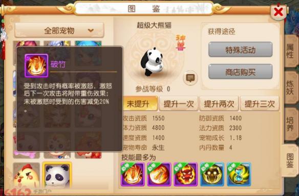 1、破竹技能与内丹有关,破竹可以触发生死决、舍身击、碎甲刃这些内丹的效果,而且不需要超级大熊猫是否处于激怒状态。