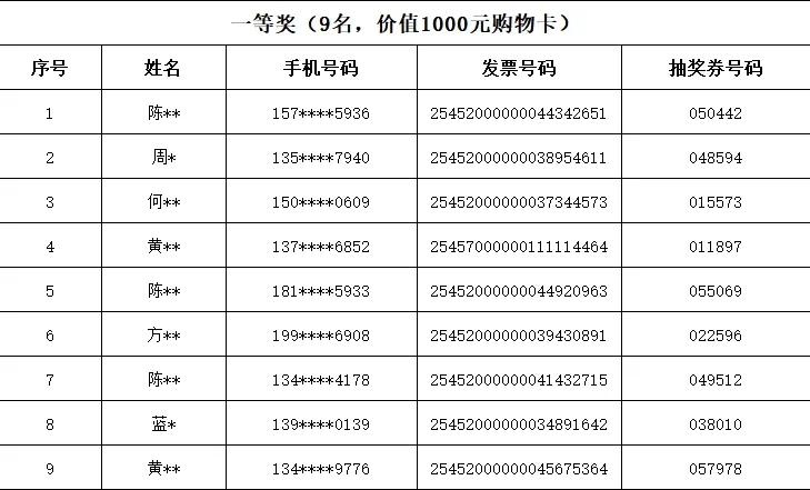 大奖等你拿!2025年发票抽奖活动第二期获奖者名单公布!