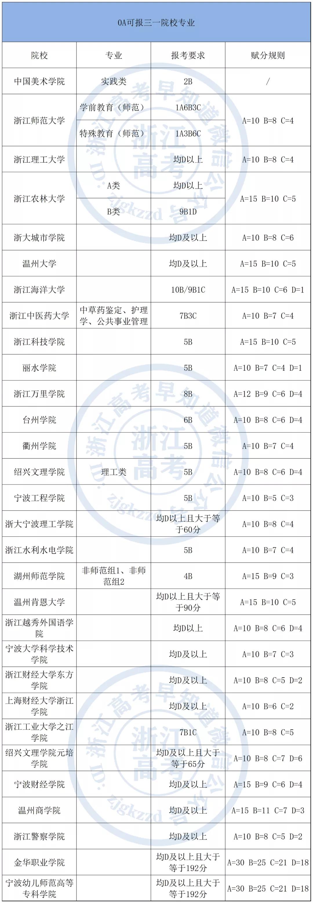 0A可报的院校和专业