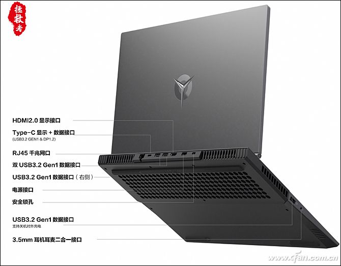 拯救者Y7000P的接口比较丰富,机身左侧提供了1组USB3.2 Gen1和耳机孔,机身右侧也有1组USB3.2 Gen1接口。