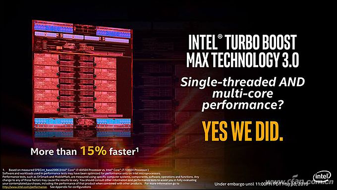睿频Max 3.0并不会取代现有的睿频2.0技术,它属于后者的增强版。俗话说“龙生九子,各有不同”,多核处理器内每一个物理核心的体质也是存在差异的,在相同的工作电压下,有些可以稳定运行在最高主频上,有些核心跑在相同主频时则存在不稳定的缺陷。睿频Max 3.0可以识别一颗处理器内体质最好的1个~2个物理核心,在需要的时候可以尽可能提升它们的频率,英特尔表示该技术可以将单线程性能提升15%以上。它原本是桌面发烧旗舰X299平台的专属技术,如今终于被移动端的第十代酷睿i7和i9尝鲜。