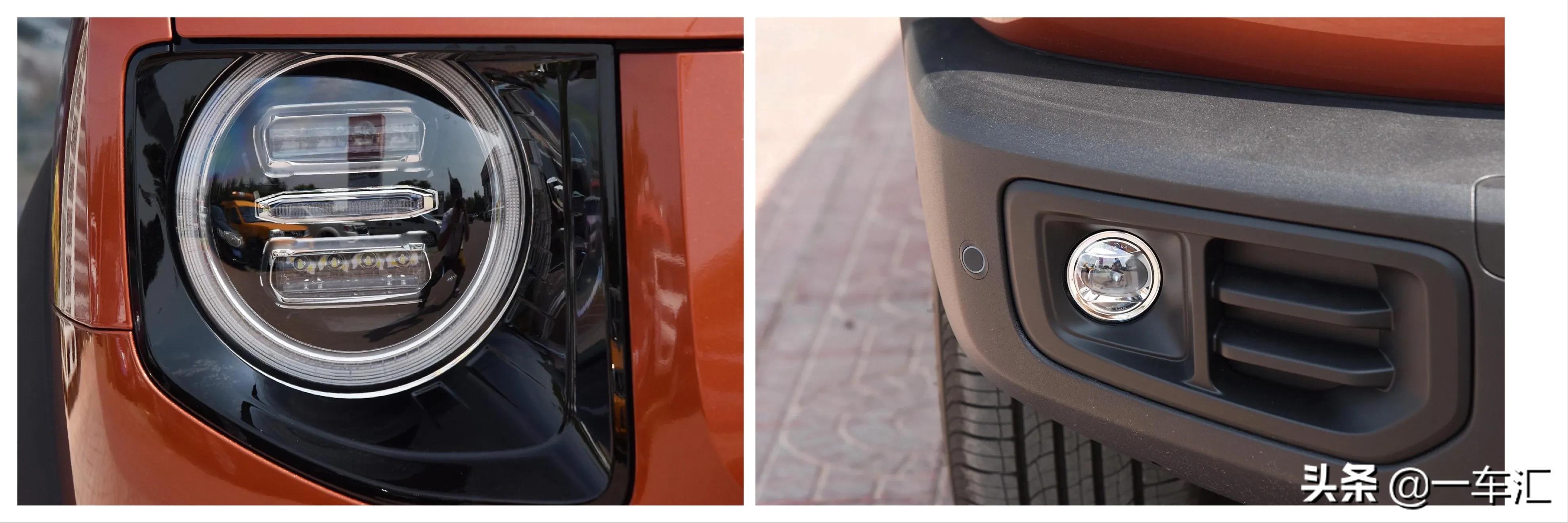 圆形大灯周围采用亮黑色烤漆边框点缀,看起来略显深邃,内部灯组结构相当精致,一圈环形日间行车灯带,同时集成了车前转向灯,点亮后效果传神;这种复古与现代交织的设计手法,在时下很多车型上多有采用。全系远近光灯组均为LED光源,支持自动大灯、延时关闭、大灯高低调节;除最低配1.5T哈士奇版外,其它车型均增加了车前LED雾灯支持转向辅助,1.5T边牧/旺财版及以上配置车型,还增加了自适应远近光功能。