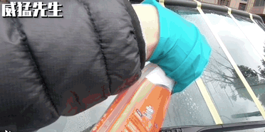 还是先把玻璃打湿后,我把蓝海豚挤在海绵上,然后直接擦洗挡风玻璃。在擦的过程中我就明显听到有摩擦的声音,我觉得这一点和这款产品的特性有关系,因为它号称含有一些微粒因子,可以通过摩擦的方式来清洗玻璃表面。