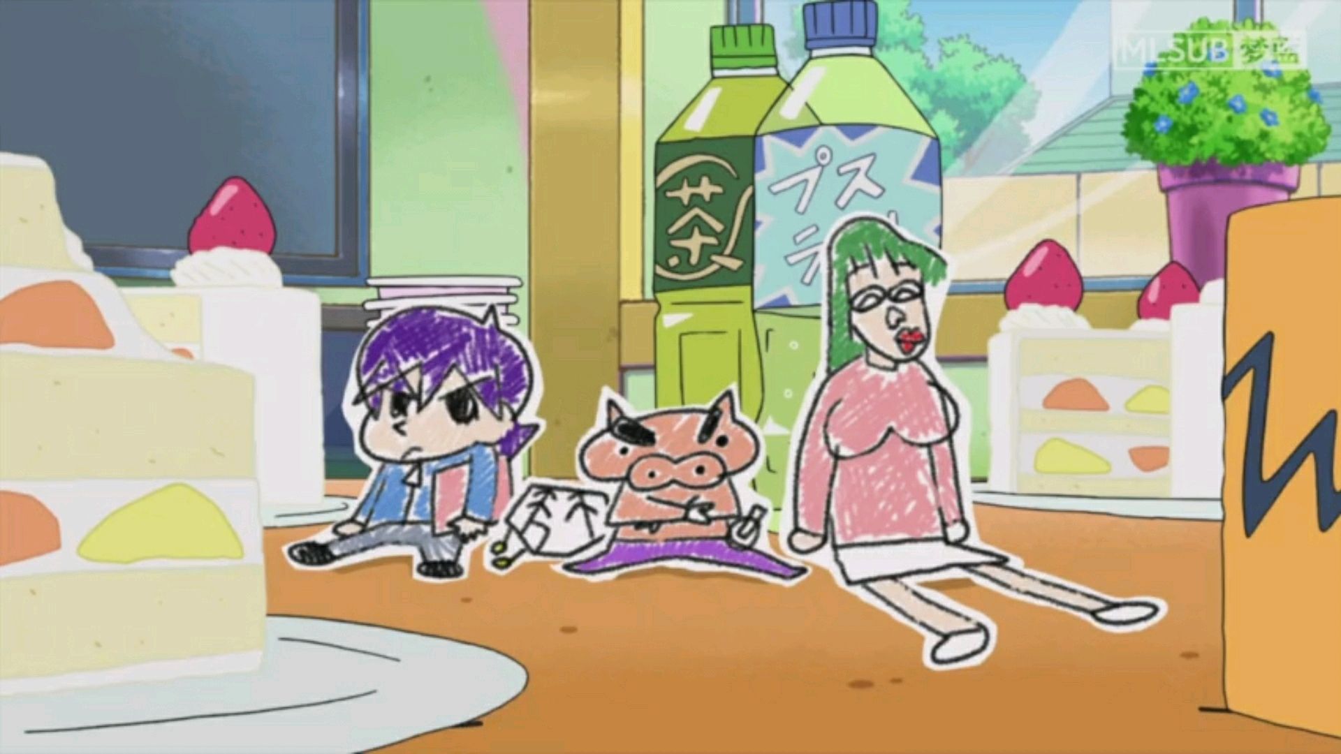 通过涂鸦王国出产的【奇迹蜡笔】,小新画出肥嘟嘟左卫门等三位勇士。