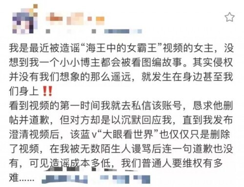 她与谣言发布者福建电视台“大眼看世界”取得联系,进行维权,但得到的是对方沉默的回应、不诚恳的态度、删除视频后一句简单的道歉。