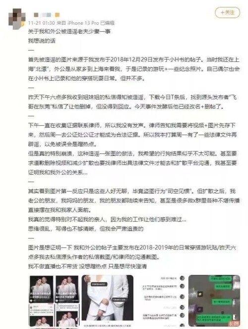 不仅如此,已婚的史先生因这条造谣视频,无辜“被出轨”。