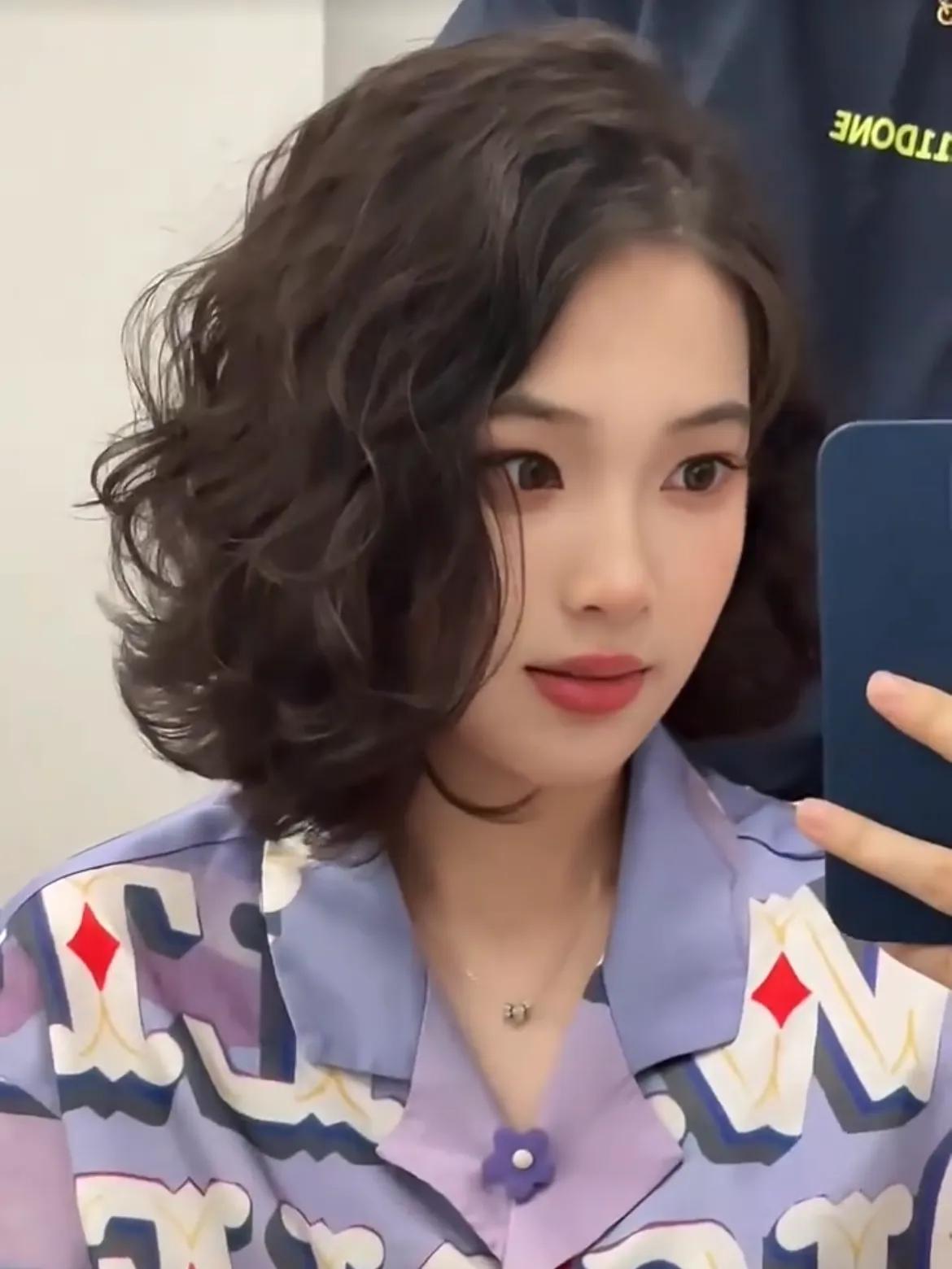 我们先通过剪短头发,缩小竖向的一个长度比例!再通过烫发的形式,不仅可以增加头顶的蓬松度、横向的宽度、还有发尾的内扣弧度!