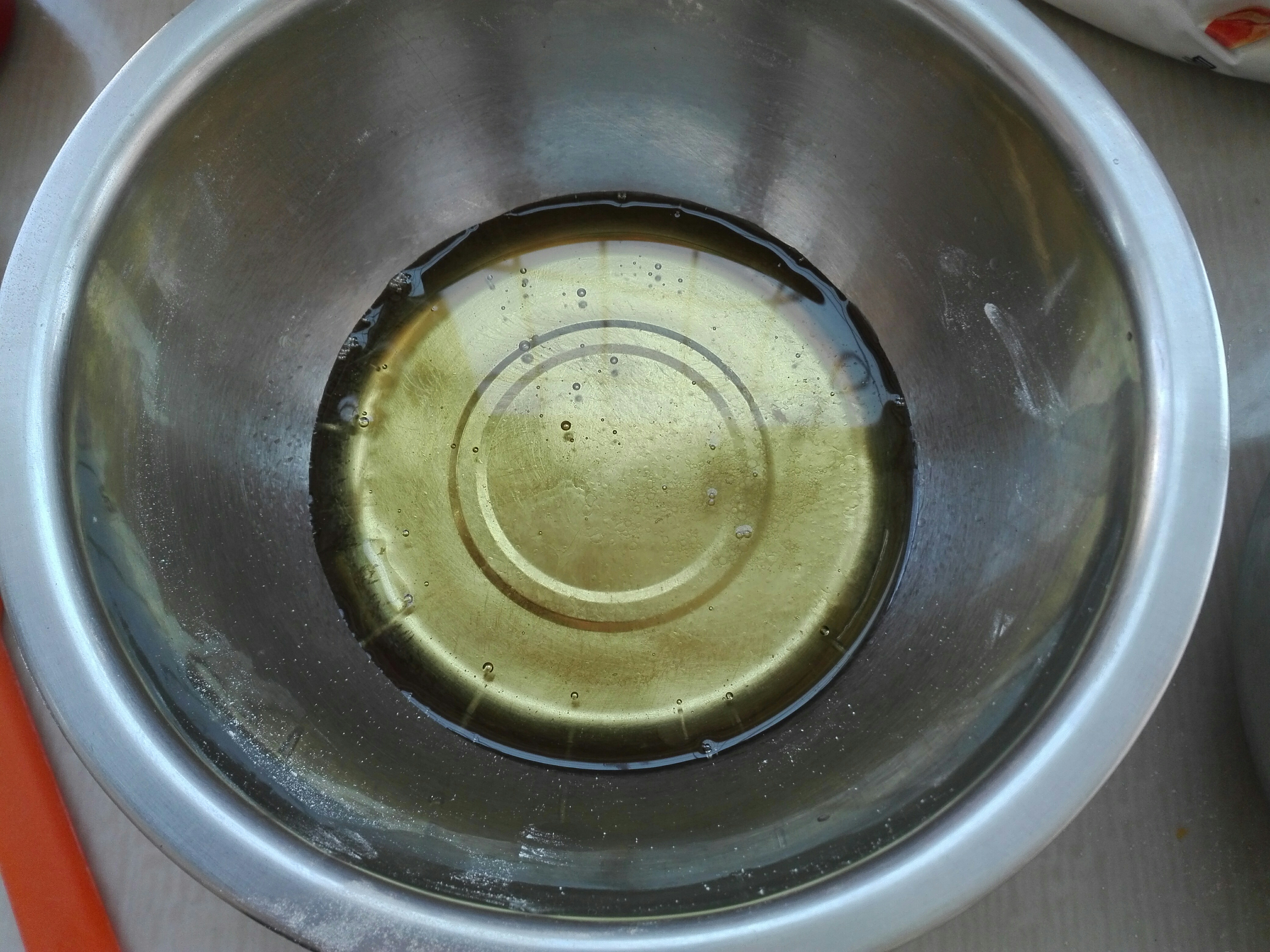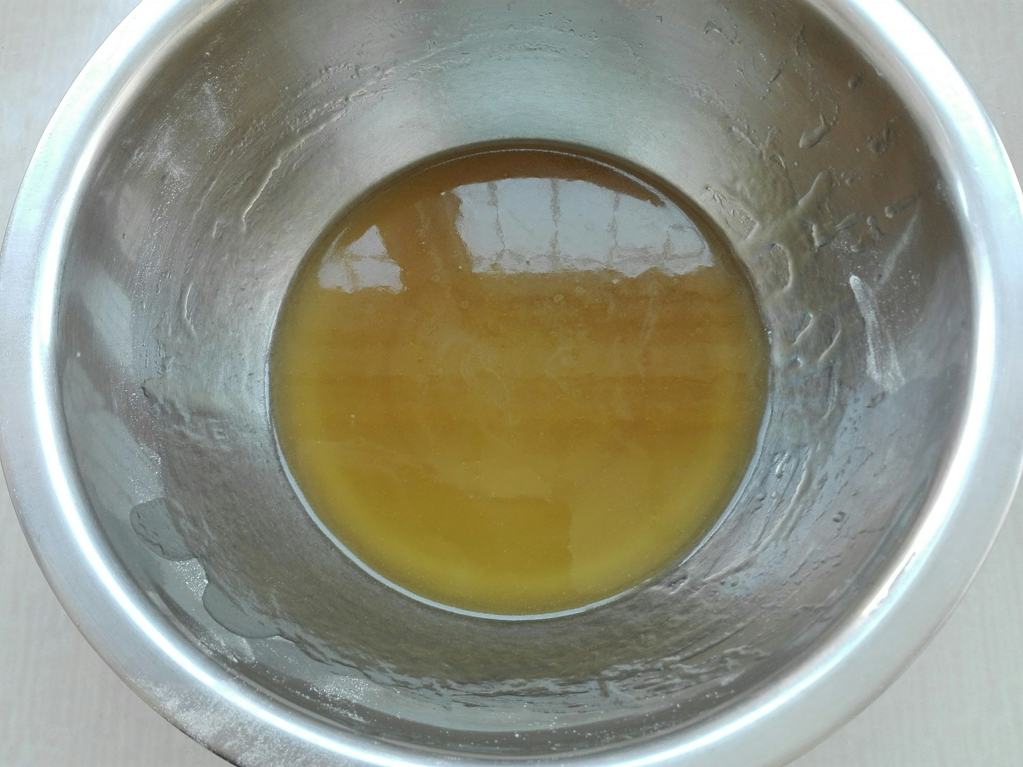 1、先将转化糖浆(我是用自己制作的转化糖浆,也有卖成品的,这个大家随意即可)同花生油混合在一起,如图所示。