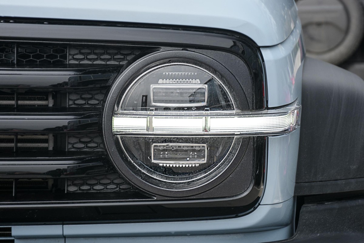 前大灯部分所有车型同样保持着相同的设计手法,虽然是致敬经典的圆孔大灯,但是坦克300的内部灯腔使用了矩阵式的排列方式,再加上延伸到外部的灯条,整体兼顾了造型上的美感和科技感。