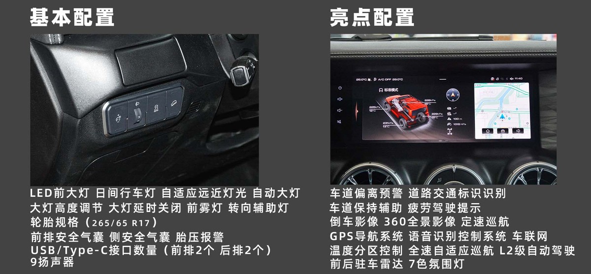 智能互联配置上,探索者搭载了一款10.25英寸的中控屏,另外3款车型则使用12.3英寸中控屏。日常经常使用到的功能,比如GPS导航系统、蓝牙车载电话、车联网功能,以及语音识别控制系统等等,全系所有车型都有给到。坦克300的内部配置上有一个点不是很讨喜,由于缺乏了大量的实体按键,多数功能几乎都集成在了车机系统上,因此日常操作时的便利性可能不是很出色。