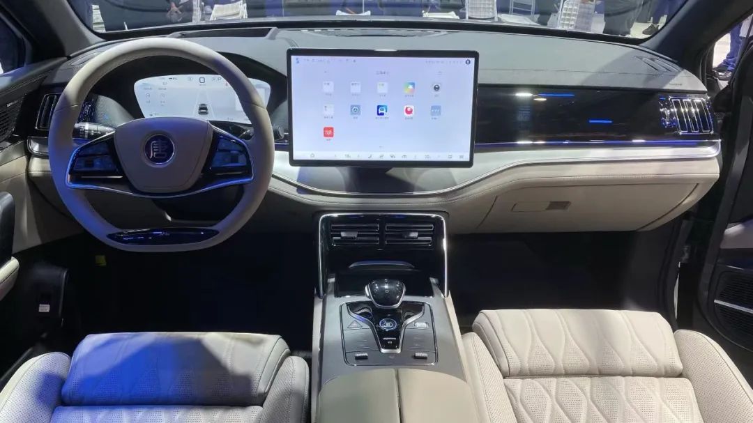 打开车门,15.6英寸中控屏+12.3英寸仪表屏,是比亚迪比较常规的设计。大量皮质、高光饰板和金属镀铬点缀后,质感也很到位。DiLink 100智能座舱、氛围灯等配置加持,舒适感进一步提升。动力上,新车搭载了第五代DM技术,百公里亏电油耗仅4.95L,零百加速7.5s。此外,铝合金多连杆、FSD可变阻尼悬、云辇-C(高配车型)等,让新车的动态表现充满期待。