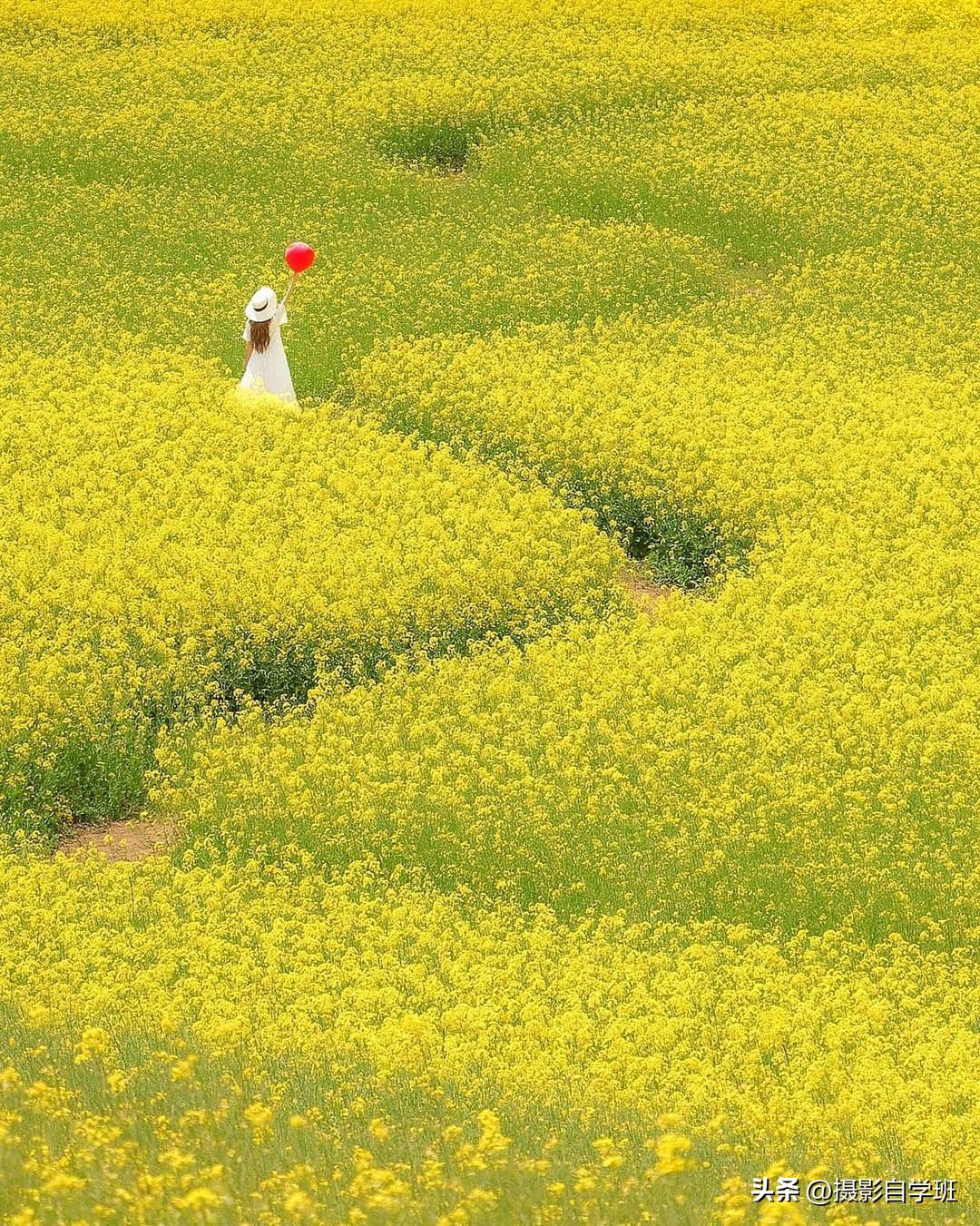 在图8这样的环境,拍摄照片的时候,不只要让被拍摄的人找准位置,站在路上,摄影师也要调整位置,让画面当中的s曲线,从接近于照片左下角,延伸到接近于照片右上角。这样对角线构图,加上s型曲线,让画面看起来更加优美,被拍摄的人,如果穿着衣服比较浅,那就让他拿着一个更加鲜艳的气球,因为现场的花是黄色的,很鲜艳,拿着鲜艳的气球,主体人物才会更加突出,更加吸引观者的注意力。