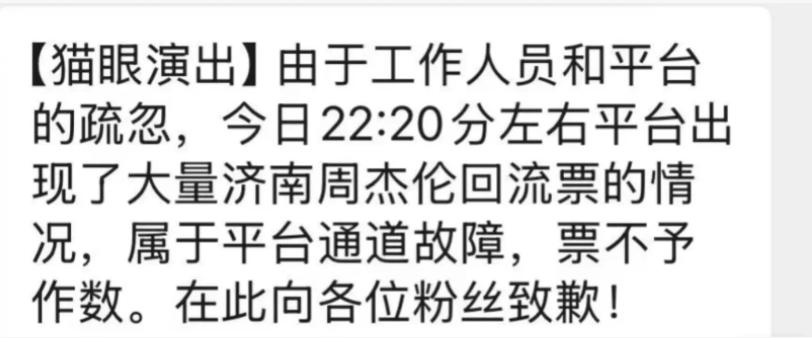 周杰伦济南演唱会回流票补偿方案来了 猫眼深夜致歉:已自动退票退款,补偿200元代金券
