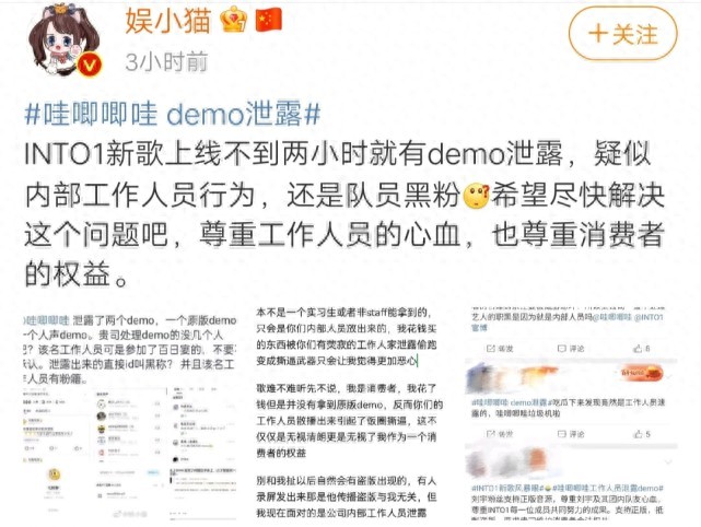 新歌demo遭泄露,疑似哇唧唧哇有内鬼,INT01官博终于做了回应