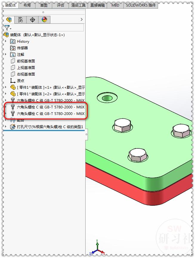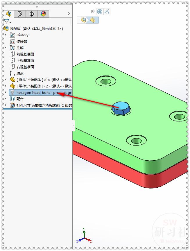 10.再重新添加一个螺栓,这时【设计树】里的名字也变了。