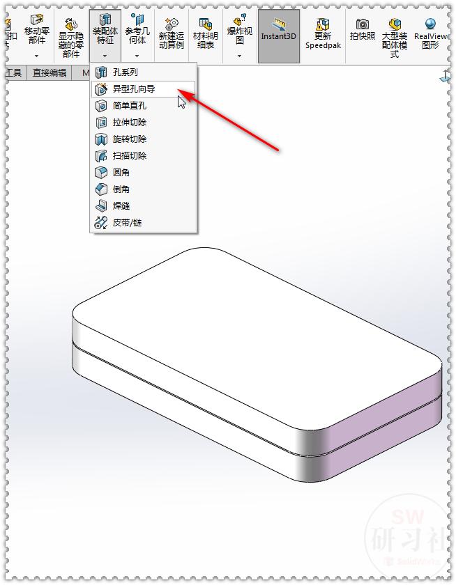 4.【装配体特征】-【异型孔向导】。