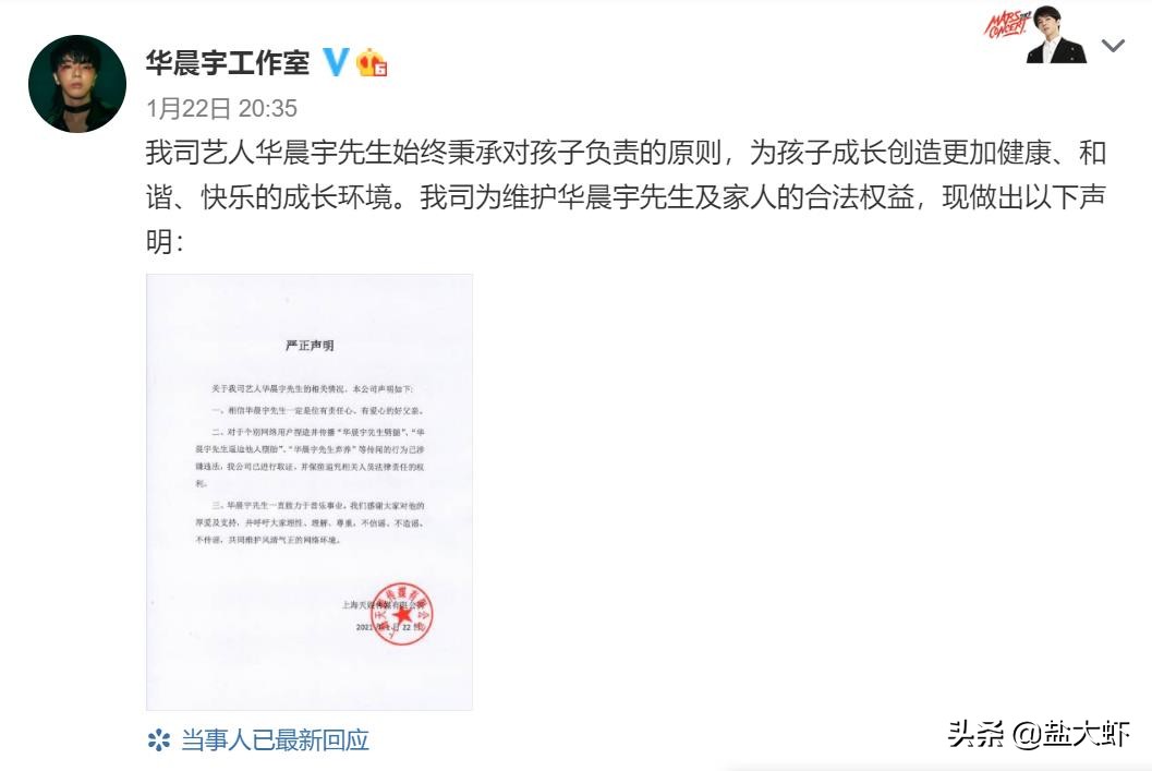 2021年1月22日,华晨宇发微博:“是的,我们是有一个孩子。”