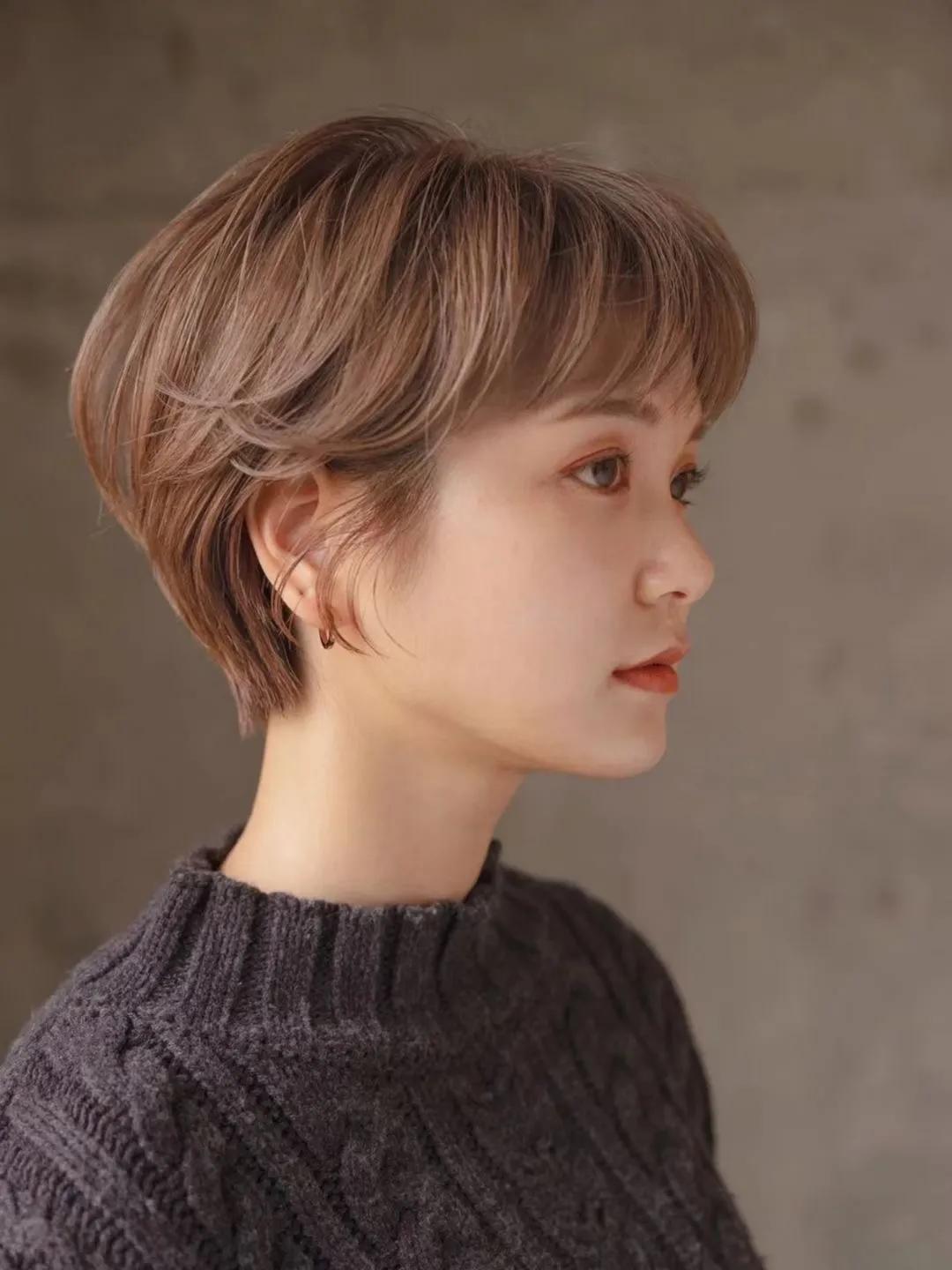 短发尽量不要是黑色头发,黑色头发有压抑感,量感中,偏老气!搭配图中的摩卡色或者咖啡色等色系,真的既美丽动人、又优雅大方!