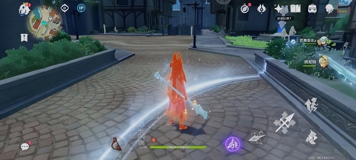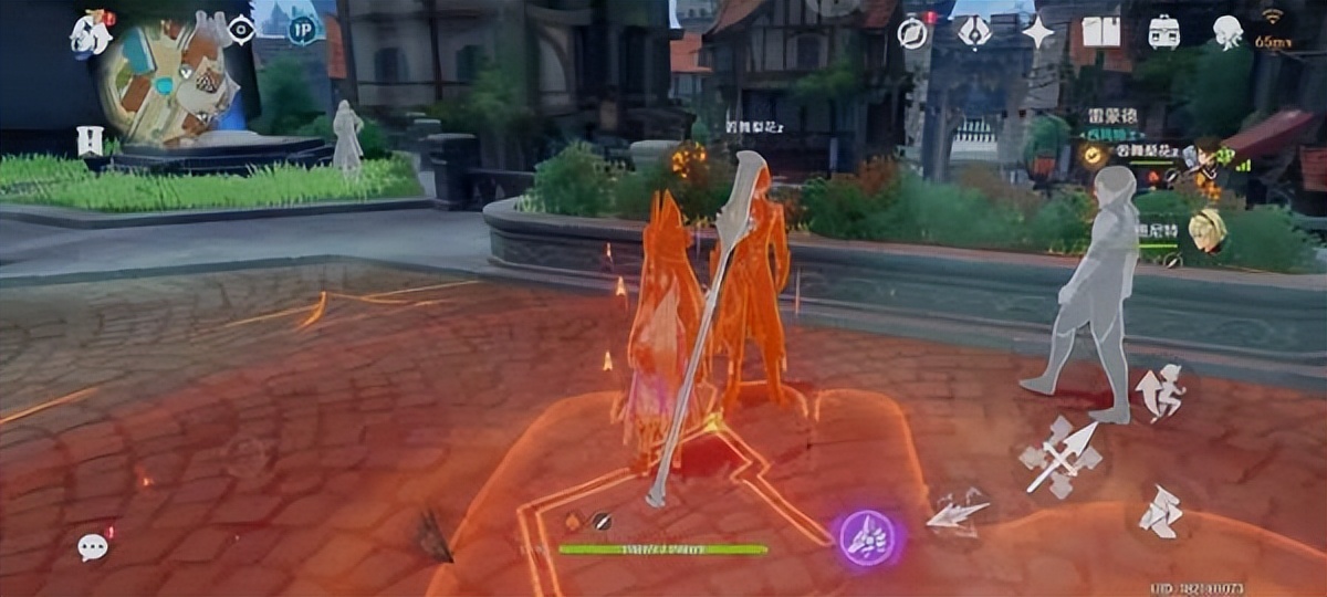 但是当角色自身存在附着元素时,在元素视野下,可以看见: