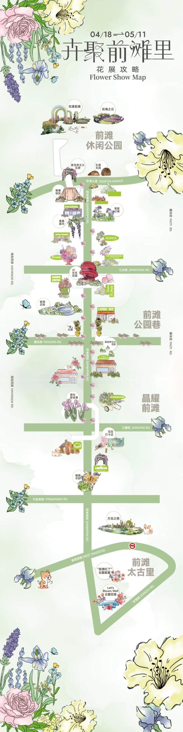 其中,前滩公园巷、晶耀前滩、前滩太古里三个前滩商业体将通过新自然主义花廊串联;移动的花展景点—浦江游览花船也开来了!