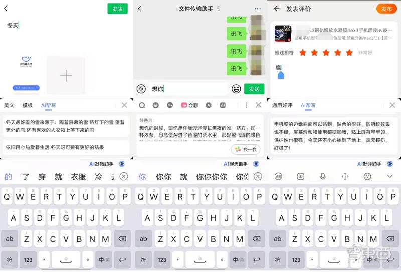 讯飞输入法AI发帖助手、AI聊天助手、AI好评助手功能