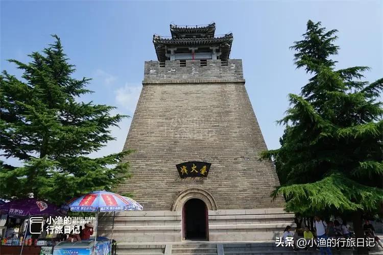 现在这座烽火台是在原址上重修而成的,整座高台青砖砌筑,高约13米,底座10米见方。中间有楼梯可以登顶,这里也是骊山景区的最佳观景点。