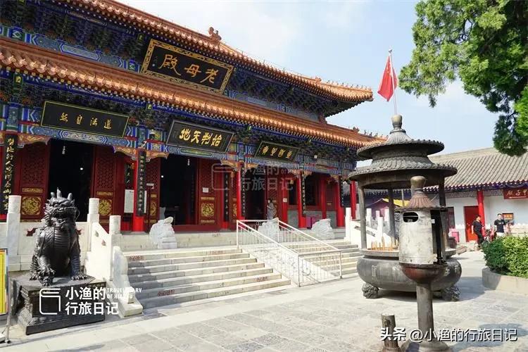 从烽火台去老母殿,路就好走多了。这座位于西绣岭第二峰山巅的道观,比我想象中的要气派多了!整座道观坐北面南,共有三进院落。除第一进三霄殿前面积狭长,后两进院落面积都不小。主殿老母殿中供奉着骊山老母的金身塑像,案前香火袅袅,可见专程前来祭拜的香客很多。