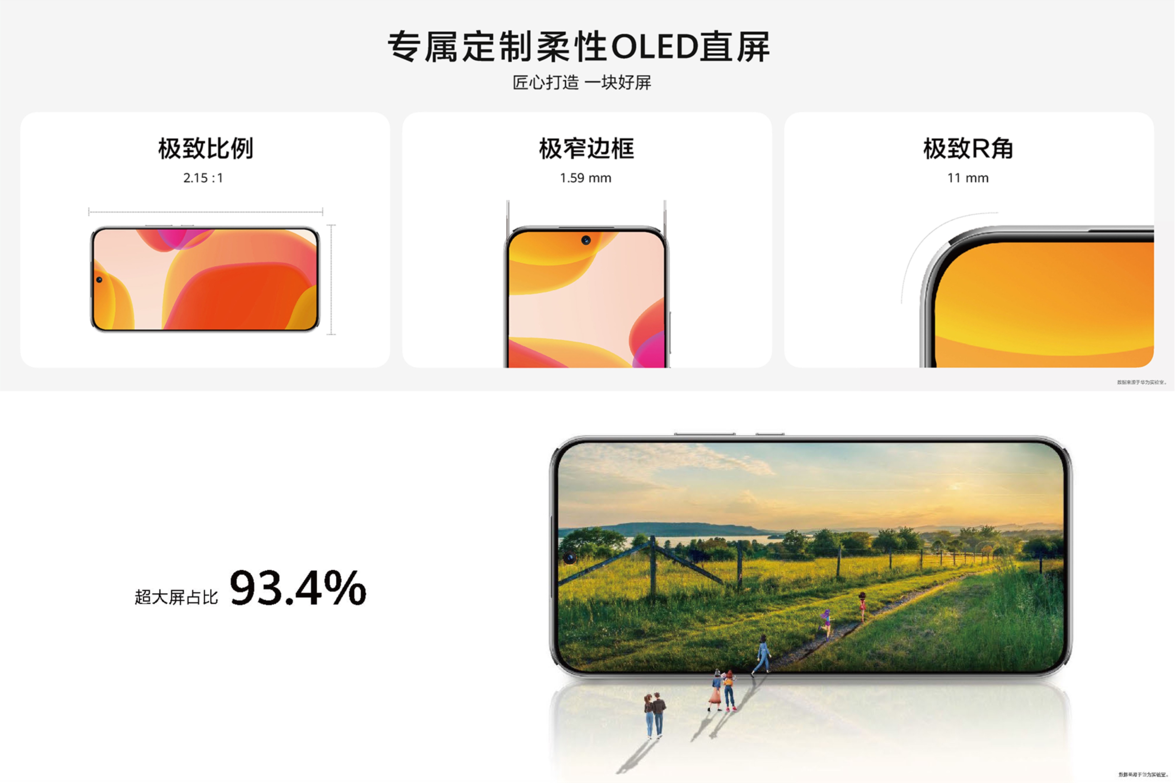华为nova 11标准版这一次采用了全新的直面屏造型,机身长宽厚规格为161.29x74.96x6.88mm,重量168克,采用约1.59mm超窄屏幕边框,屏占比达到了93.4%,拥有极为出色的屏幕视觉效果,以及舒适的握持手感。