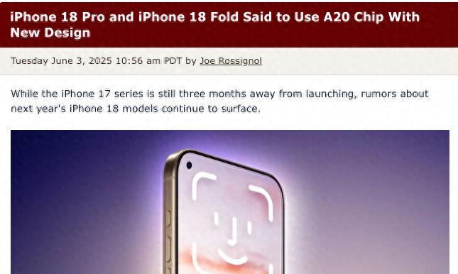 iPhone 18系列设计关键升级:Pro与折叠机型或搭载全新A20芯片