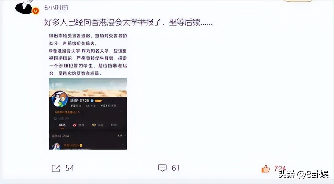 网友翻出香港浸会大学学生手册第15章第3条规定,诬告同学造成不良影响的,最高可开除学籍。