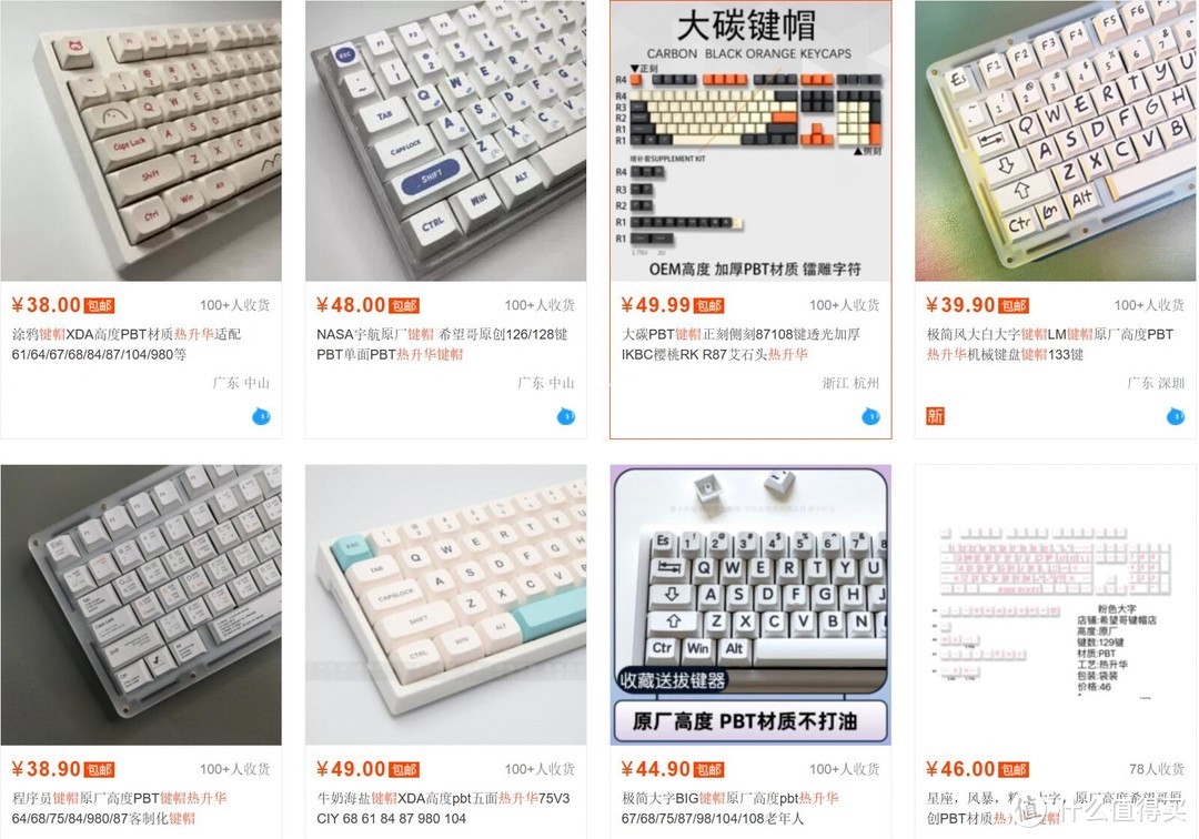 汗手用户:PBT二色键帽、热升华键帽,尽量选择粗面设计的