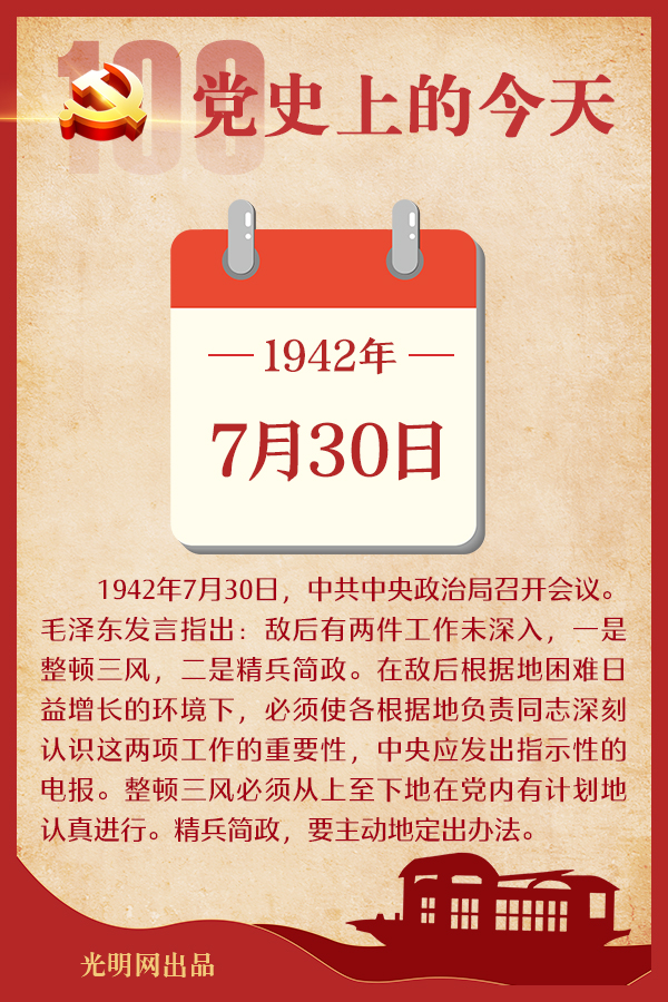 中共中央政治局召开会议。毛泽东发言指出:敌后有两件工作未深入,一是整顿三风,二是精兵简政。在敌后根据地困难日益增长的环境下,必须使各根据地负责同志深刻认识这两项工作的重要性,中央应发出指示性的电报。整顿三风必须从上至下地在党内有计划地认真进行。精兵简政,要主动地定出办法。精简的比例是:全部脱产人员占老百姓人数的百分之三。要按这个比例,主动地、彻底地、有计划地执行。
