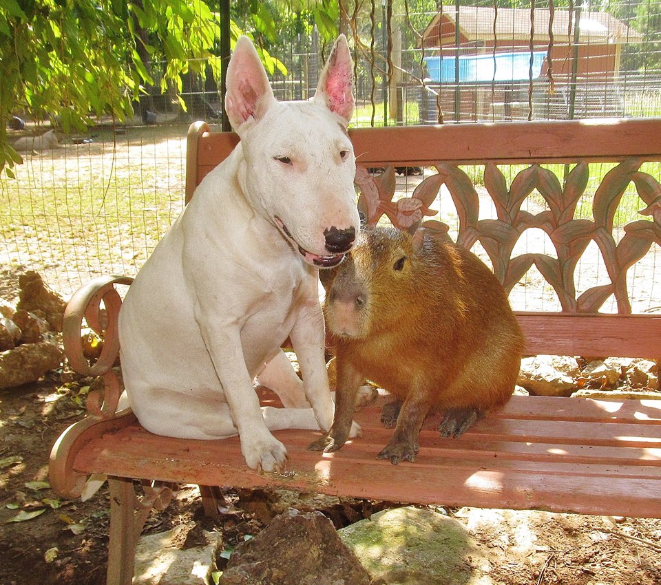 水豚最大的特点就是吃草,非常温顺,可能正是因为这一点,很多动物都愿意和它做朋友,不管是在动物园还是野外,你经常可以看到不同的动物骑坐在它的身上,优哉游哉,甚至连鳄鱼,也和它相聚甚欢,就更别说狗狗、乌龟、鹿什么的了。