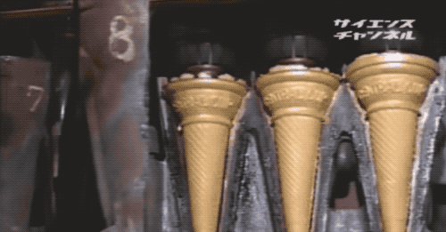 答案是 YES !恰好,最近我看过最新的蛋筒生产线,特别适合做成无线循环动图,过过眼瘾了,来更新一下清晰度吧!😂