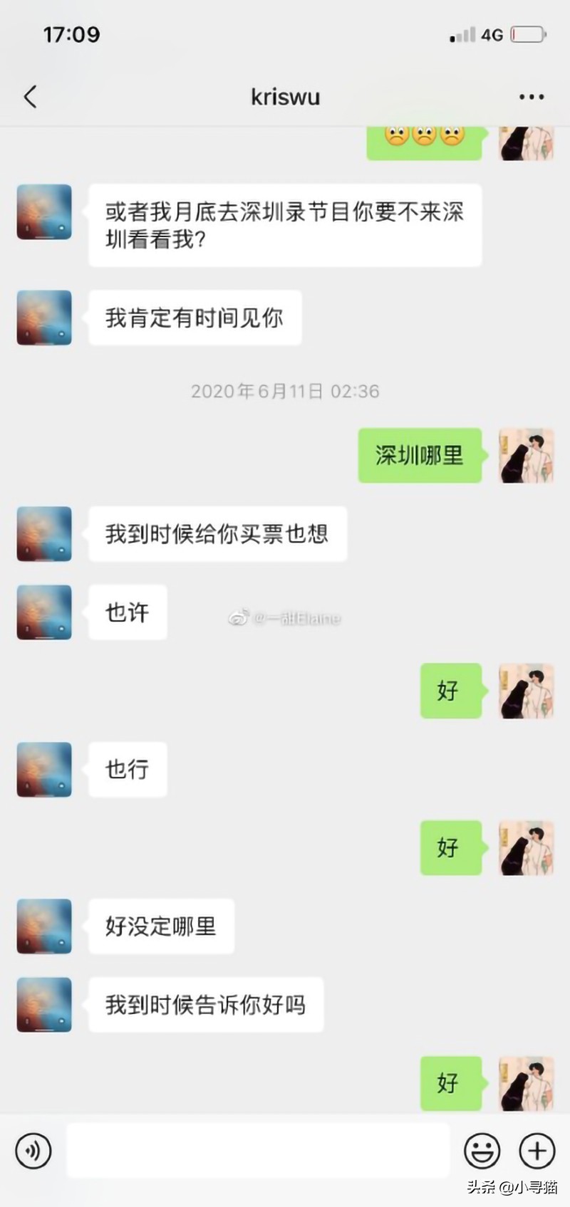 7月17日,一名叫“一甜Elaine”的女生晒出疑似与吴亦凡的聊天记录!