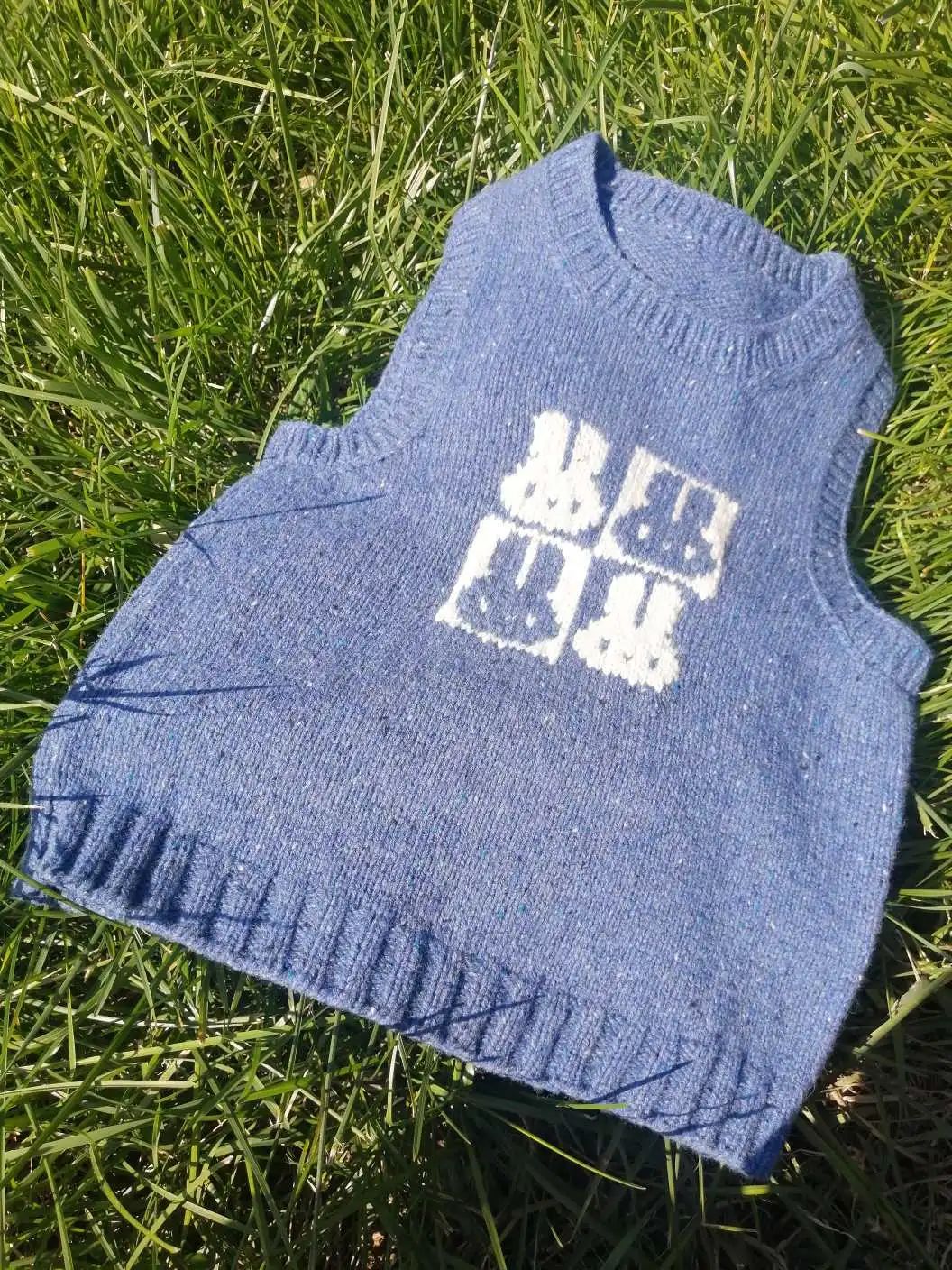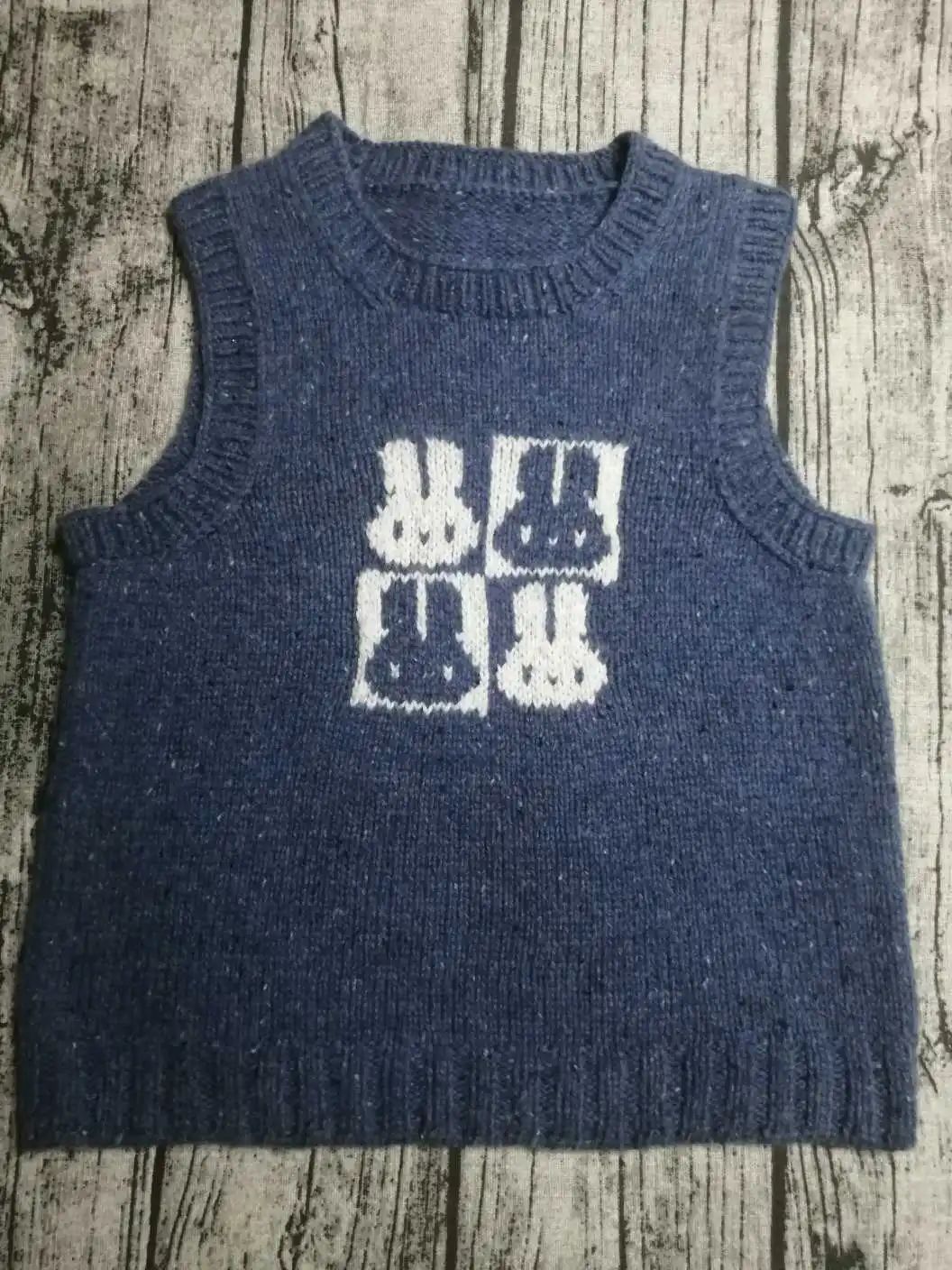 1.后片:3.5号针起针90针,织两行空心针后织双螺纹,15行后换4.0针,均匀减6针余84针,织22公分后开始收腋窝,两边各平收7针,正面行两边各减一针,反面行不减,两边各减10针,余50针往上接着织。腋下减针结束后,不加不减织9厘米,开始减斜肩,两边各减10针,每行都减针,减至30针收针,后片结束。