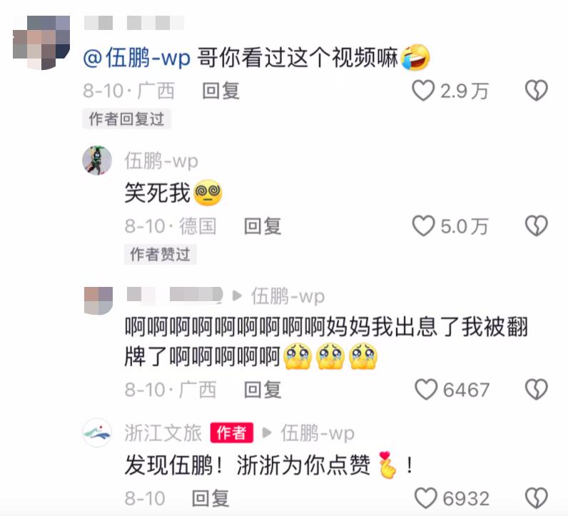 有网友在浙江文旅账号下问伍鹏:“哥,你看过这个视频吗?”