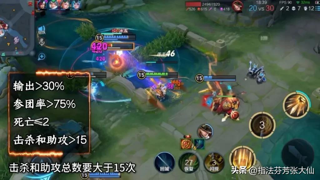 需要输出占比大于30%,参团率大于75%,死亡次数不超过2次,击杀和助攻总数要大于15次。