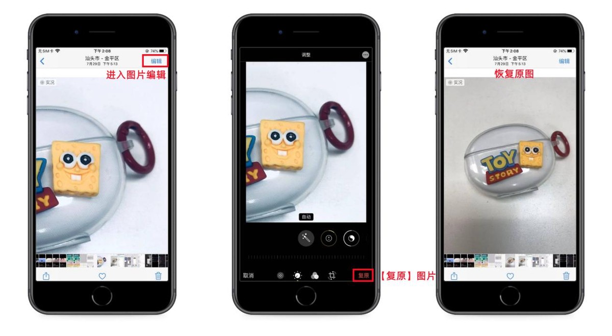 「操作方法」:打开照片→【编辑】→【复原】→即可自动恢复“原图”效果。