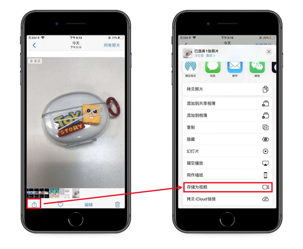 「操作方法」:打开live动图→点击【分享】按钮→选择【存储为视频】功能→即可将live动图单独保存为视频文件。